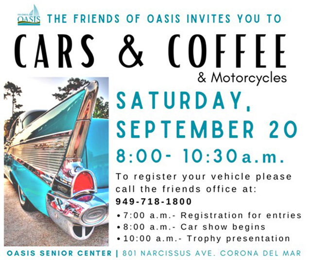 Join us on Saturday, September 20th at 8:00 AM at the OASIS Senior Center, 801 Narcissus Ave., Corona del Mar, CA for one of the most anticipated automotive events in Newport Beach and Corona del Mar. This free community event features coffee, donuts, and an incredible lineup of 80+ prestigious and unique vehicles.