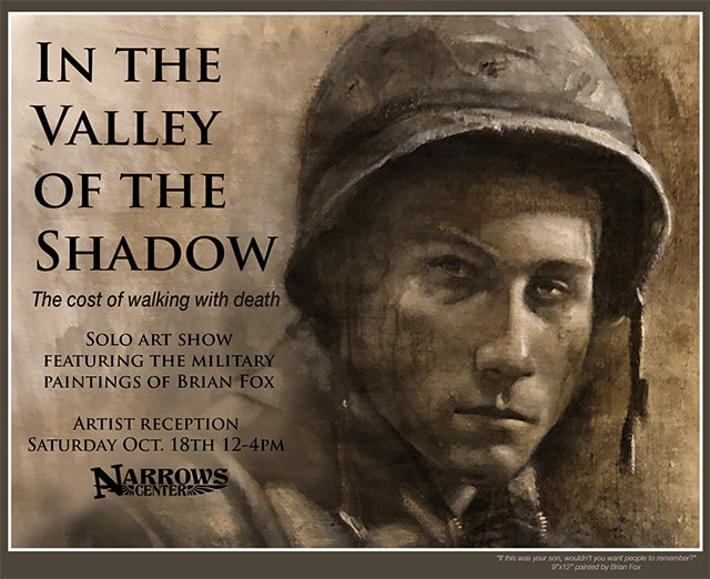 In the Valley of the Shadow: The Cost of Walking with Death, a solo art show featuring the extensive collection of military paintings by renowned artist Brian Fox exploring the human condition.