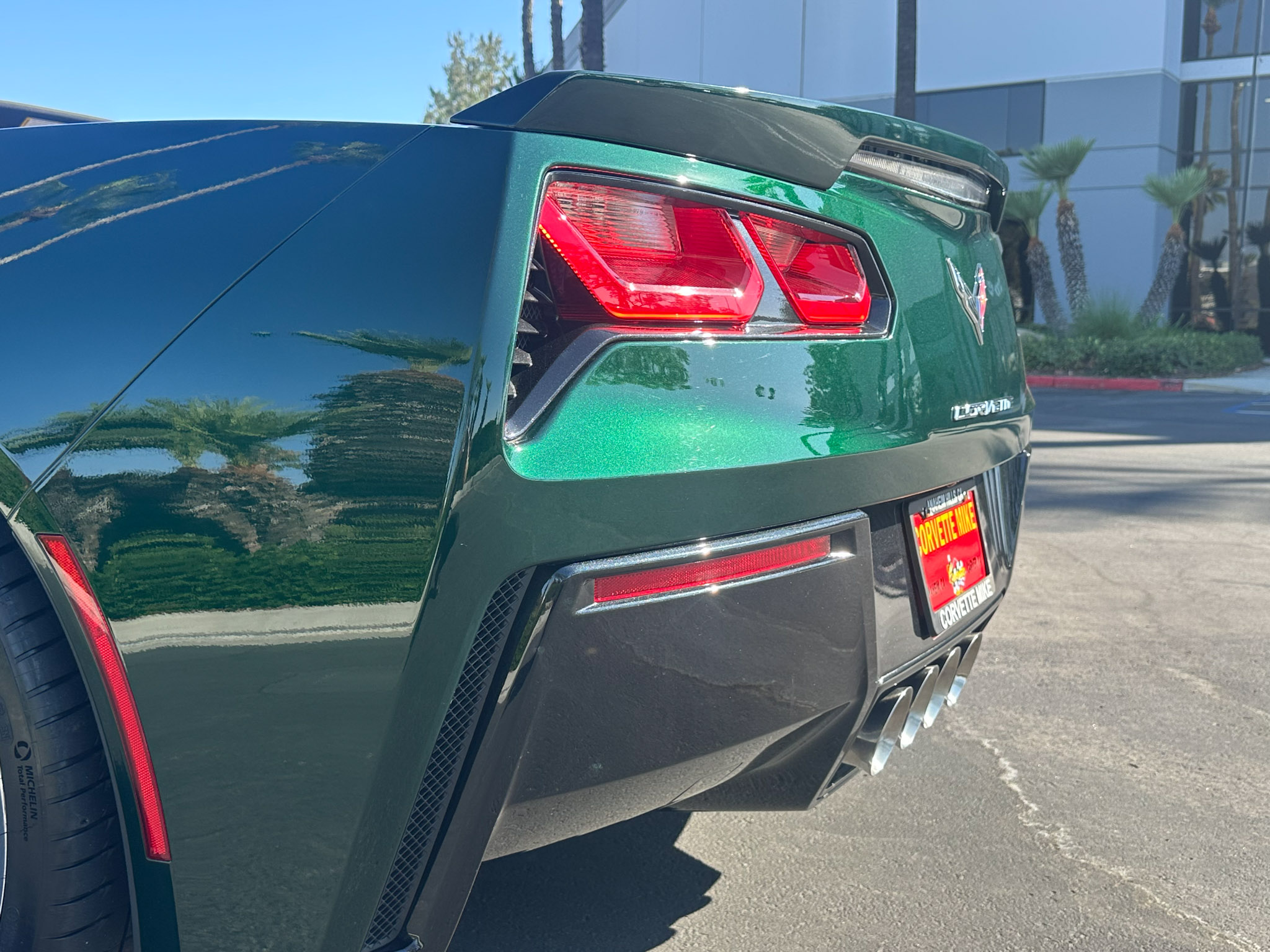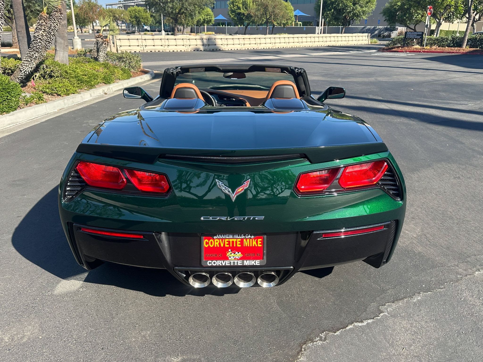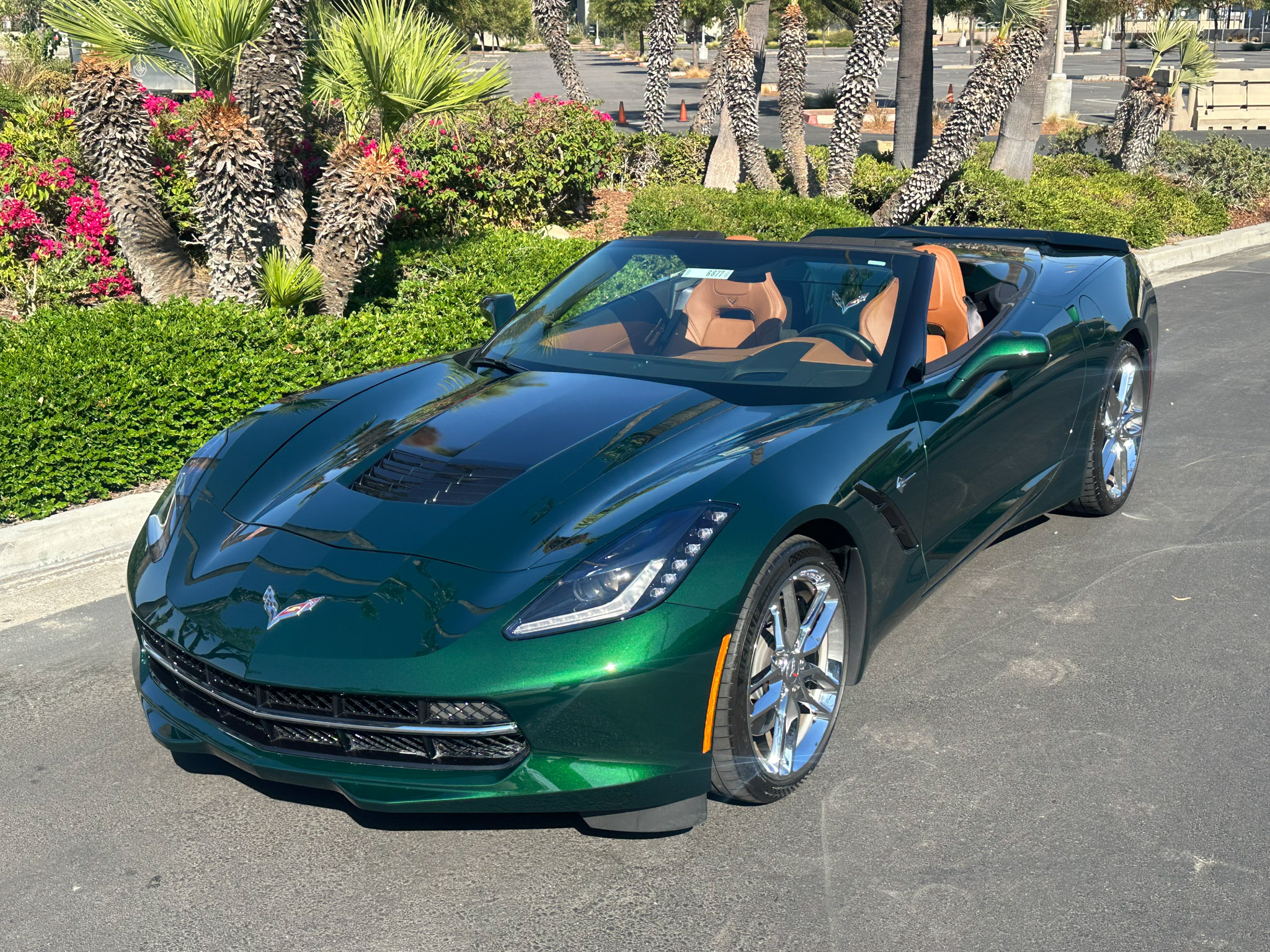 Lime Rock Green w/Kalahari interior, 376/460hp, 6-speed paddle-shift automatic transmission. The 2014 model year marked the introduction of the all-new seventh generation Corvette and reintroduced the Stingray name. The body featured a more angular look with more pronounced body lines. The interior was also completely revamped and featured 2 8″ LED screens. It was offered as both coupe and convertible; the Convertible with the Z51 performance package is one of the more desirable trims.   The Z51 package adds upgrades for better handling, braking, aerodynamics, and overall track capability. Spec Value Engine 6.2‑liter LT1 V8, overhead valve (OHV) Horsepower / Torque ~ 455 hp @ 6,000 rpm; ~ 460 lb-ft torque @ ~ 4,600 rpm Transmission options 7‑speed manual or 6‑speed automatic Performance (0‑60 / Quarter‑mile etc.) 0‑60 mph in about 3.8 seconds, quarter‑mile ~ 12.2 sec at ~ 116‑117 mph (for Z51 Convertible) Fuel economy (estimated) ~ 17 mpg city / ~ 29 mpg highway for manual Z51 Convertible: similar for non‑Z51 values. Cargo volume ~ 10 cu ft in the convertible version (vs ~ 15 cu ft in coupe) Weight & size Wheelbase ~ 106.7 in; length ~ 176.9 in; width ~ 73.9 in; height ~ 48.6‑48.9 in. Curb weight is higher than coupe due to convertible top structure. The Z51 package brings several performance‑oriented upgrades: Larger / slotted brake rotors (better cooling, stopping power) Dry‑sump oiling for the engine to maintain oil pressure during high‑load/high‑g driving Special suspension tuning, including optional Magnetic Ride Control for smoother yet more responsive damping.   Electronic limited‑slip differential (ELSD) which helps during aggressive cornering, improves traction. Performance tires and wheels (wider, more grip) and aerodynamic add‑ons (spoilers, etc.) for improved handling & stability. The absolutely gorgeous example featured here is a two-owner Z51 with only 2,925 miles on the odometer!  It’s loaded with options, including 3LT and chrome wheels.